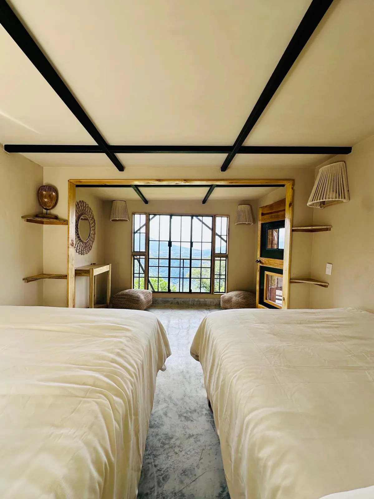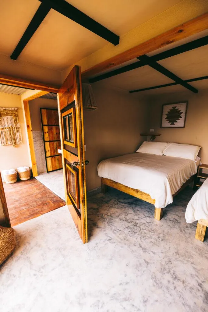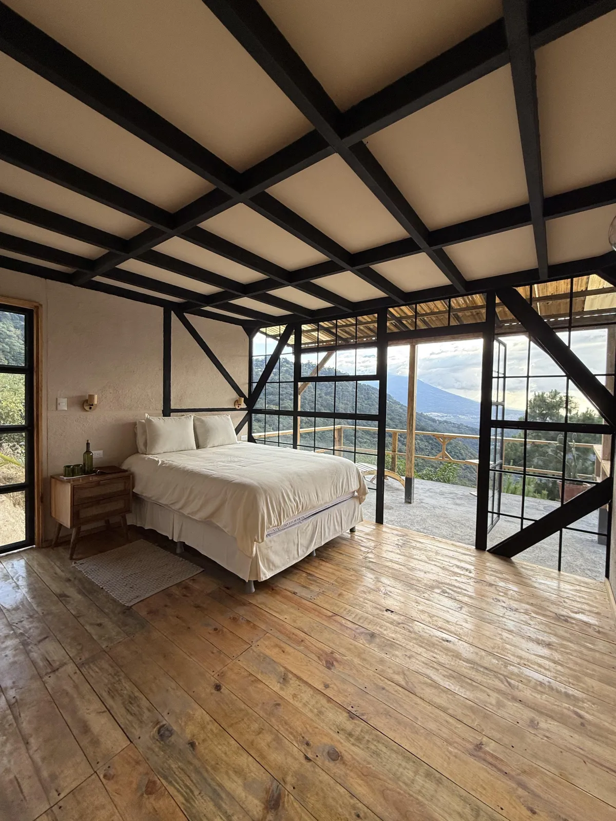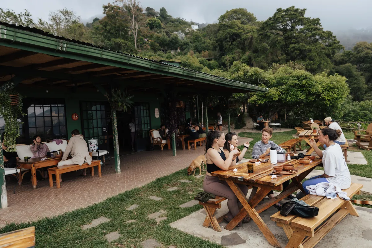 You can book a flight to La Aurora International Airport (GUA) Guatemala City. From the airport, you can choose between an airport shuttle for a comfortable and direct option, an Uber or taxi for a faster and more private journey, or a chicken bus for the most budget-friendly but longest and most local experience. A free pickup and drop off from and to Antigua is then provided to take you up to the Mountain Resort.