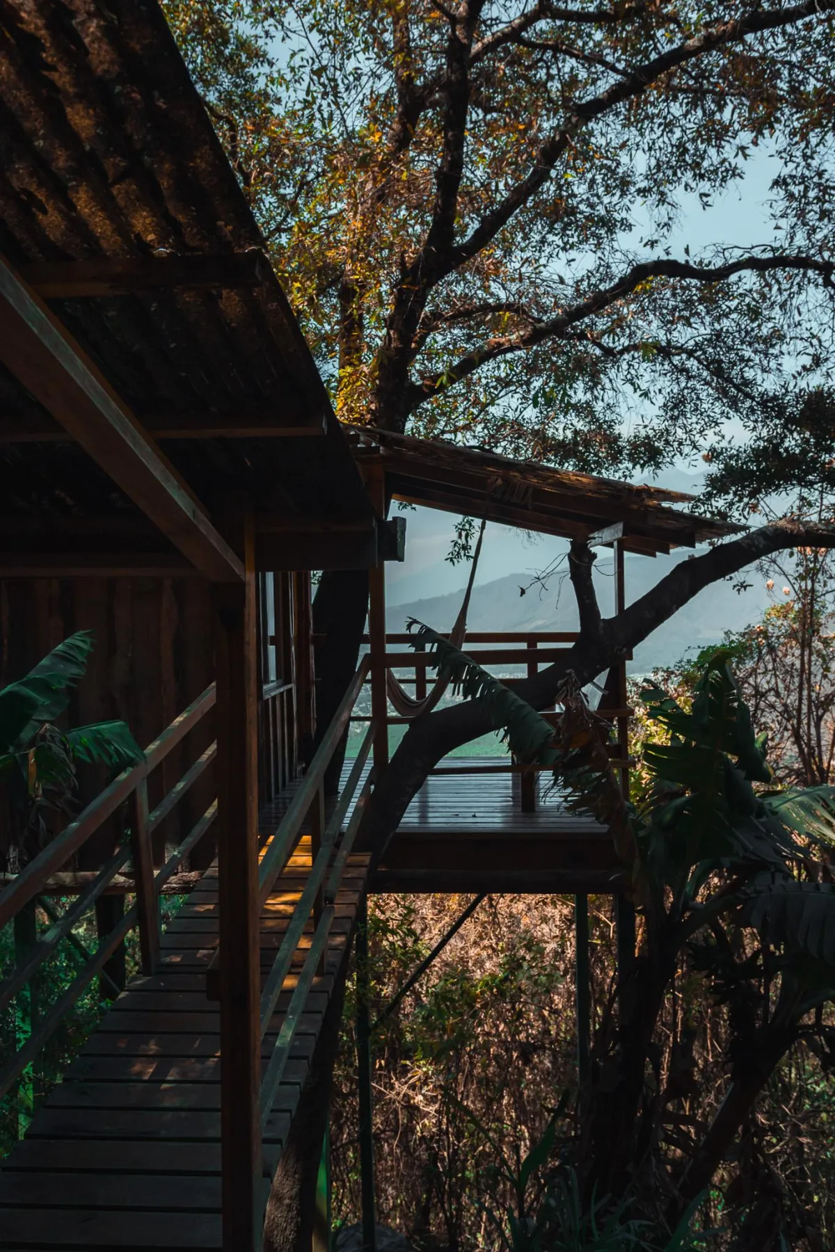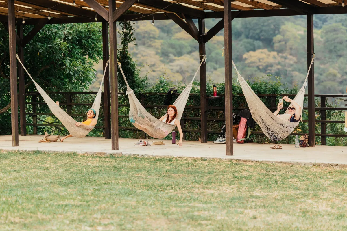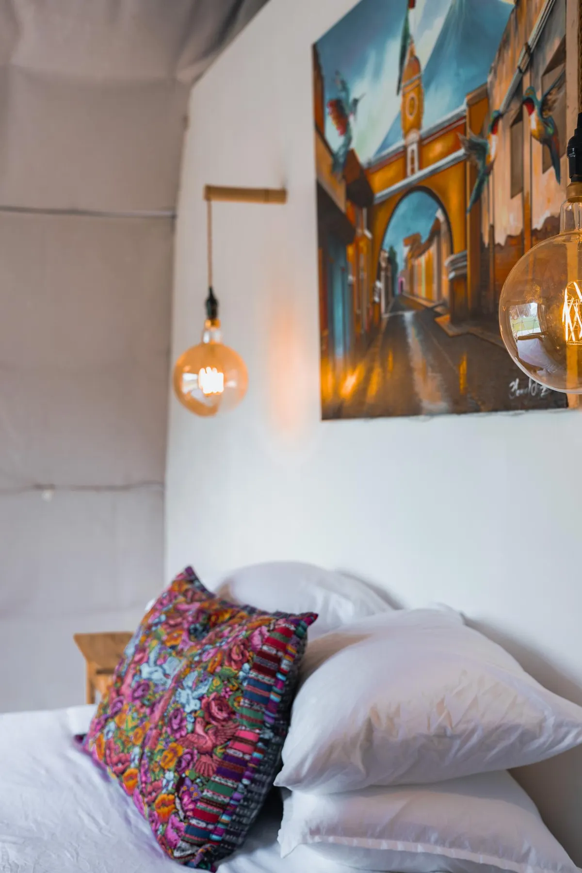 You can book a flight to La Aurora International Airport (GUA) Guatemala City. From the airport, you can choose between an airport shuttle for a comfortable and direct option, an Uber or taxi for a faster and more private journey, or a chicken bus for the most budget-friendly but longest and most local experience. A free pickup and drop off from and to Antigua is then provided to take you up to the Mountain Resort.